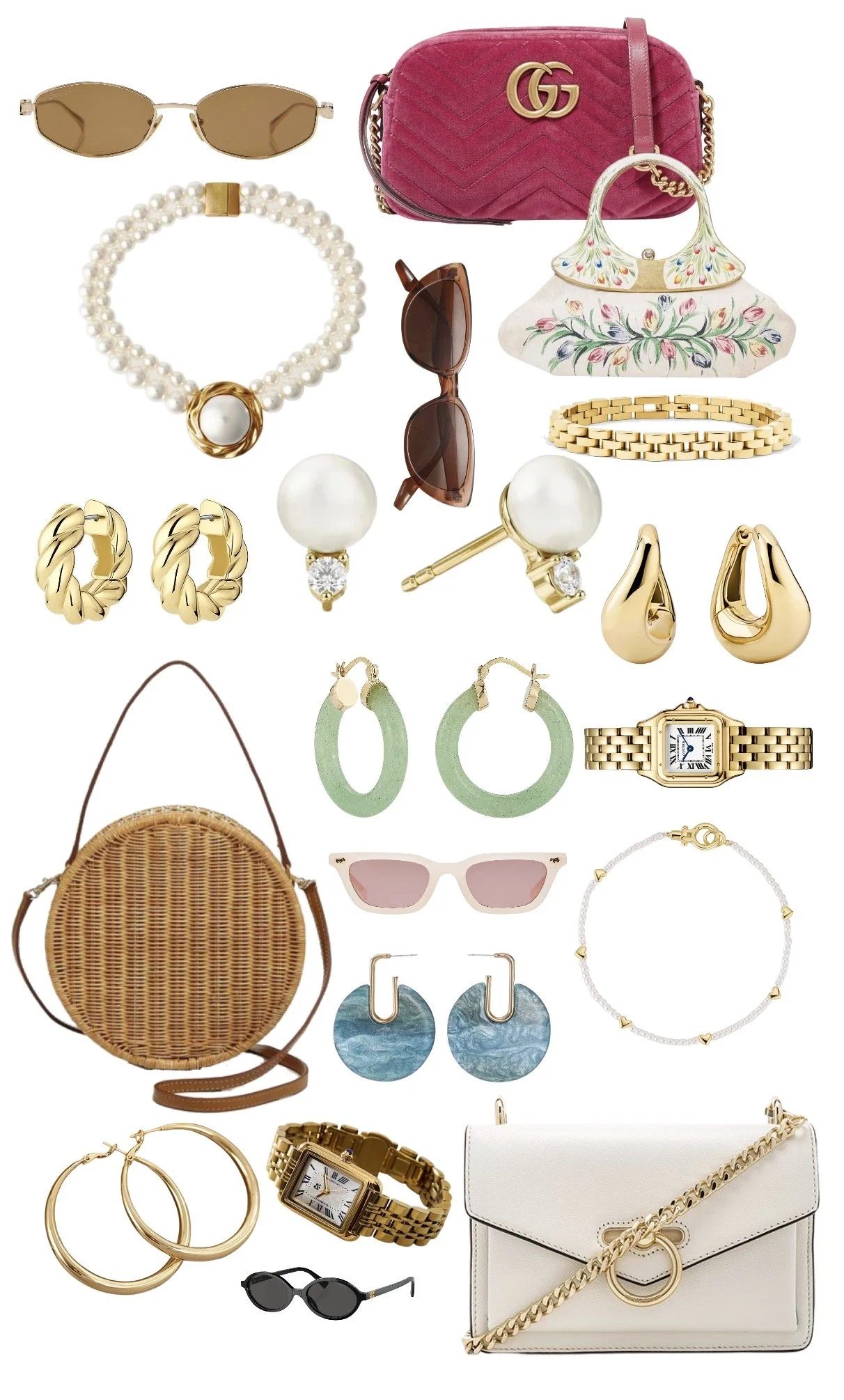 Keep jewelry light and "organic" (think pearls or gold hoops) and choose a small crossbody or top-handle bag so your hands are free for a glass of bubbly.