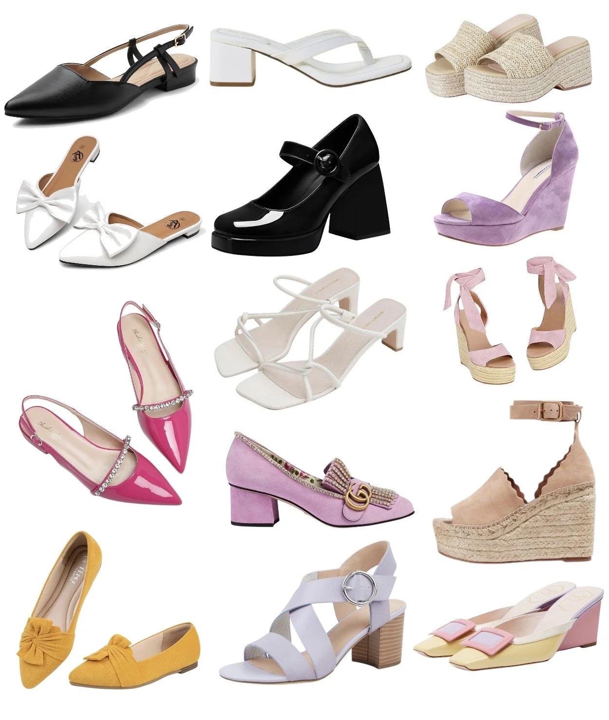 Featured: Pointed-toe Flats, Block Heels, Wedges